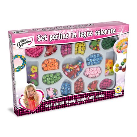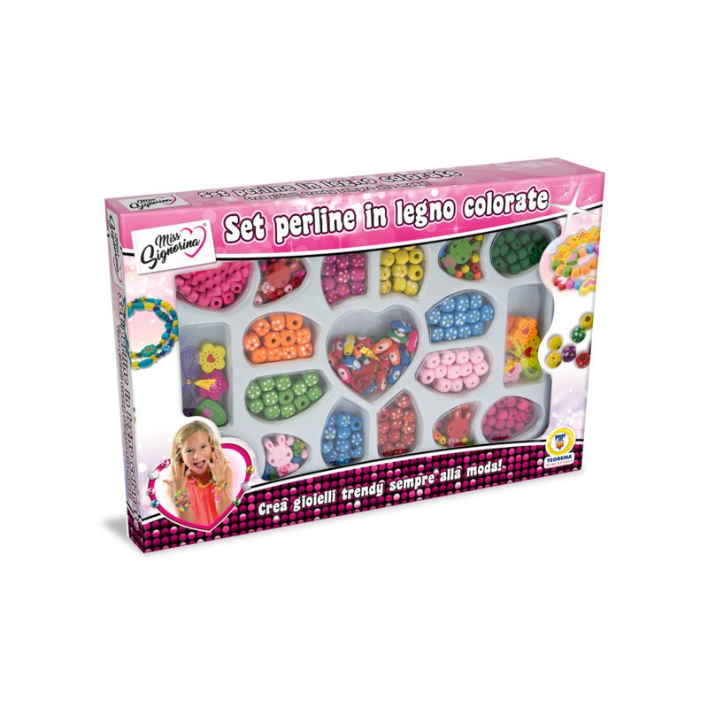 SCATOLA PERLINE IN LEGNO COLORATE MISS SIGNORINA