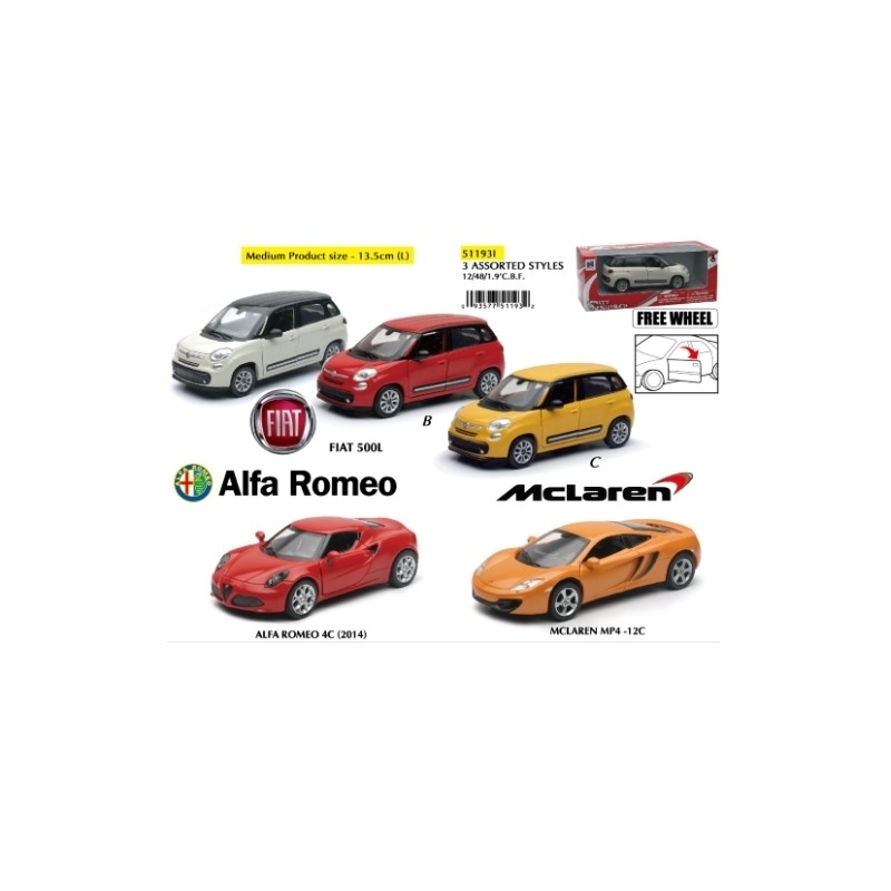 AUTOMODELLO SCALA 1 32 FIAT 500L ALFA ROMEO 4C AUDI R8 SOGGETTI ASSORTI