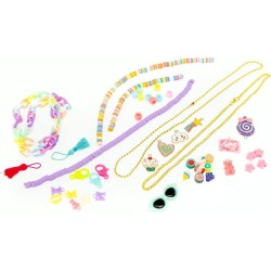 CARATTERISTICHE la confezione è arricchita da perline di colore arcobaleno a forma di stelline a sfera di lettere e di fymo con catenelle ciondoli e nappine per creare bracciali e collane per bambine Le chiusure sono regolabili grazie ai gancini da applicare sulle catene