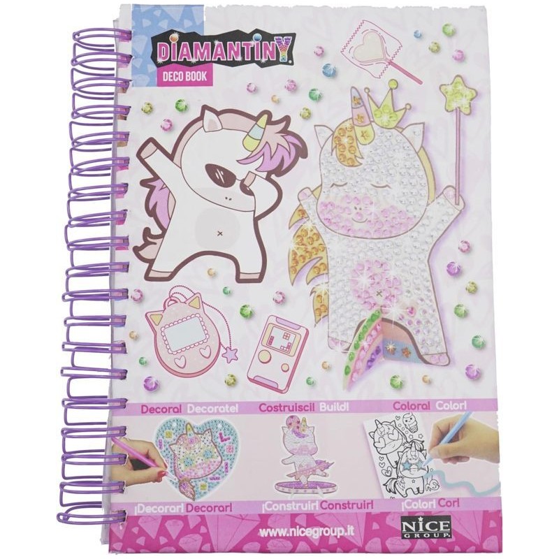 DIAMANTINY COLORING BOOK decora le immagini dei simpatici unicorni costruisci i modellini di cartoncino e colora le pagine presenti nel blocco da disegno Deco Book