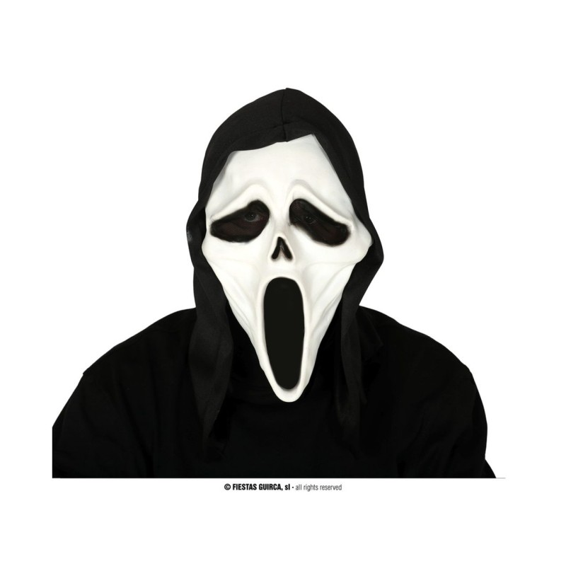 OSATE SPAVENTARE CON QUESTA MASCHERA DA ASSASSINO CON CAPPUCCIO Realizzata in poliestere e vinile Perfetta per Halloween e feste dell orrore Colori bianco e nero