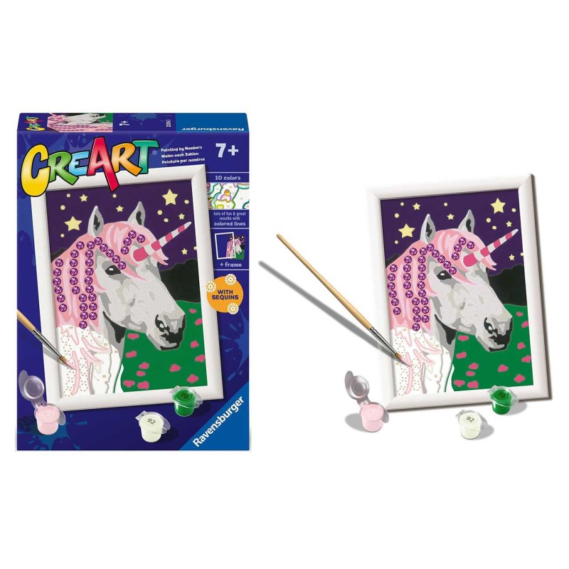 Metti alla prova le tue capacità artistiche e la tua creatività con CreArt Tutto quello che ti serve è il nostro kit per dipingere all interno troverai tutto il necessario per creare dei veri e propri capolavori Con CreArt inoltre il divertimento non ha età stimola la fantasia aiuta ad allenare la manualità dei più piccoli ed è l hobby perfetto per staccare la spina Sbizzarrisciti con CreArt Un kit completo per dipingere dei piccoli capolavori semplicemente con l aiuto di numeri e bordi colorati Educativo per i piccoli artisti e rilassante per i più grandi CreArt è lo svago perfetto Con CreArt puoi scegliere tra tantissimi soggetti e diversi livelli di difficoltà a seconda dei gusti e dell età a partire dai 7 anni I numeri ti guideranno all utilizzo dei colori da usare per dipingere ogni spazio E per i più piccoli le linee colorate assicureranno un risultato incredibile Dipingere con i numeri non è mai stato così semplice nella confezione trovi la tavola prestampata i colori acrilici a base d acqua in vaschette richiudibili e un porta tempere Il pennello e la cornice sono inclusi Rilassati esercitando la manualità fine e le tue abilità di concentrazione il risultato ti sorprenderà