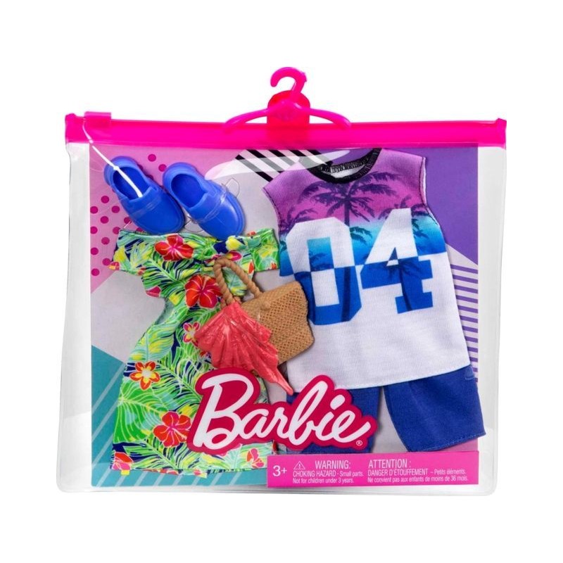 Questi pacchetti moda offrono il doppio del divertimento in termini di moda con vestiti e accessori per le bambole Barbie e Ken per 2 look completi