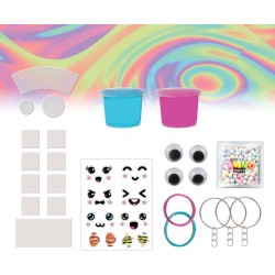 Slime e Portachiavi Contiene 2 vasetti di slime per aggiungere una componente divertente e sensoriale alla creazione insieme a 3 portachiavi per trasportare le creazioni ovunque