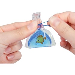 Accessori e Decorazioni Il kit comprende 4 occhietti un sacchetto da 1g di palline di gommapiuma un foglio adesivo trasparente con occhi bocche guance e pesci per personalizzare le creazioni e 2 elastici per completare i portachiavi
