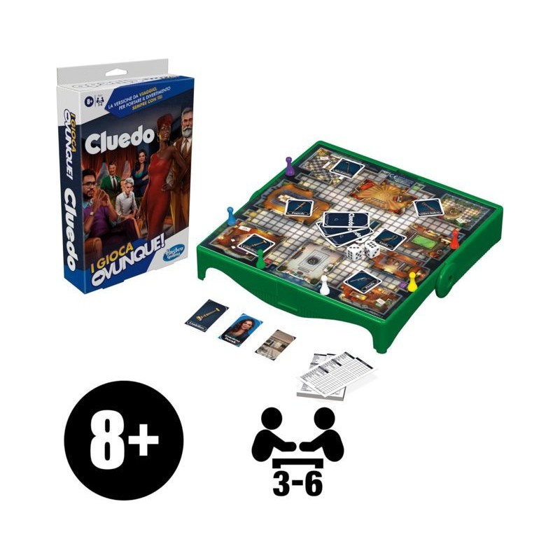 VERSIONE PORTATILE DEL GIOCO CLUEDO la stessa giocabilità classica in un formato compatto Il gioco Cluedo I Gioca Ovunque dagli 8 anni in su è una versione mini e portatile del gioco da tavolo ricco di mistero Cluedo per divertirsi in viaggio