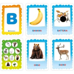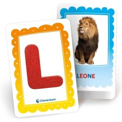 COSA CONTIENE gioco educativo Montessori Made in Italy con un approccio ecosostenibile e materiali riciclati adatto per bambini dai 3 ai 5 anni con 26 tessere con lettere smerigliate 18 flashcards 4 carte categorie e guida con suggerimenti di gioco
