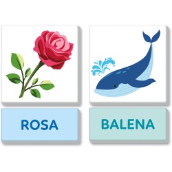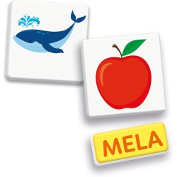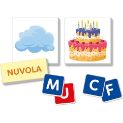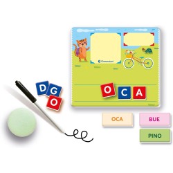 COSA CONTIENE gioco educativo Made in Italy adatto per bambini dai 4 ai 6 anni include 110 letterine in cartone 20 carte con soggetti illustrati e 20 cartellini dei nomi una lavagna compositoio pennarello cancellino e una guida con i suggerimenti di gioco