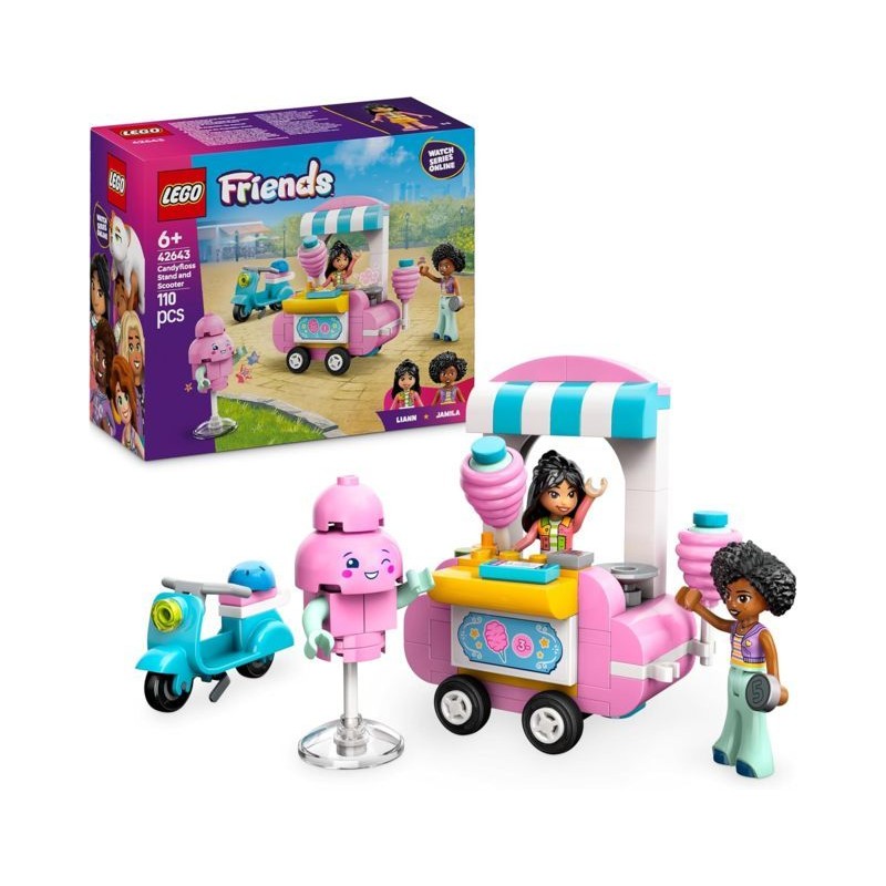 Kit di costruzioni LEGO Friends per bambini e bambine da 6 anni in su il gioco di ruolo della Bancarella di Zucchero Filato e Scooter LEGO Friends contiene 2 mini bamboline un carrello con ruote e uno scooter giocattolo con cavalletto