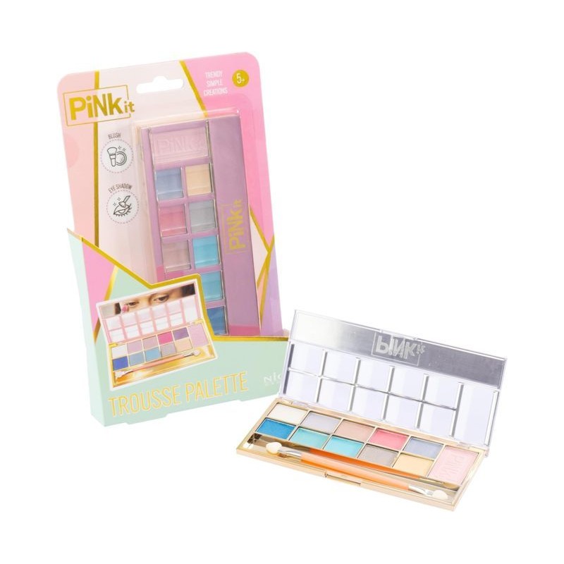 PINK It PALETTE SMALL simpatica trousse a forma rettangolare con vassoio di colore oro e kit di trucchi con ombretti e blush per bambine