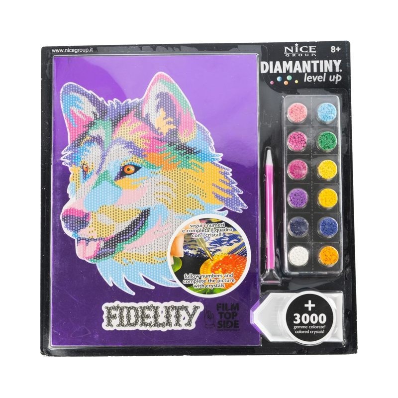 DIAMANTINY LEVEL UP è la nuova attività crystal art per creare mosaici fai da te in rilievo con coloratissime gemme 3D Disponibile nella versione POP Fidelity Wolf da gemmare