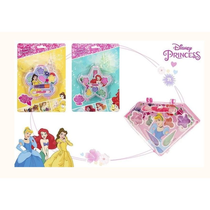 Princesas Disney Set de maquillaje 7 piezas estuche con 3 sombras de ojos con el pincel 1 pinta uñas 1 gloss y 1 pincel Es fácil de lavar no daña la piel