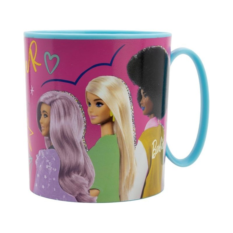 Pratica tazza che delizierà i più piccoli della casa essendo decorata con alcuni dei loro personaggi preferiti del mondo del cinema e della televisione E' adatta al microonde quindi sono ideali per riscaldare la colazione dei bambini ogni giorno e grazie al suo materiale resistente resisterà alle cadute accidentali tipiche di tutti i giorni Capacità 390 ml Adatto al microonde Senza BPA Facile da pulire Materiale completamente adatto per l alimentazione BARBIE and associate