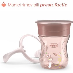 TAZZA A PROVA DI SCHIZZI La tazza ergonomica Chicco Perfect Cup con manici removibili è facile da impugnare ed è pensata per i bambini dai 12 mesi che stanno imparando a regolare il flusso durante la