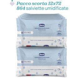 Chicco Salviette Neonato Detergenti Multiuso Senza Alcool Profumate Adatte per Pelli Sensibili senza flip 2024 Megapack da 864 Salviette 12 Confezioni da 72 Salviettine
