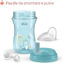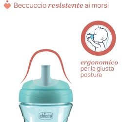 TAZZA ANTIGOCCIA La tazza antigoccia ergonomica Chicco Advanced Cup facile da impugnare è pensata per i bambini dai 12 mesi che stanno imparando a regolare il flusso durante la bevuta coordinando respirazione e deglutizione