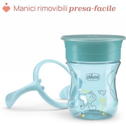 TAZZA A PROVA DI SCHIZZI La tazza ergonomica Chicco Perfect Cup con manici removibili è facile da impugnare ed è pensata per i bambini dai 12 mesi che stanno imparando a regolare il flusso durante la