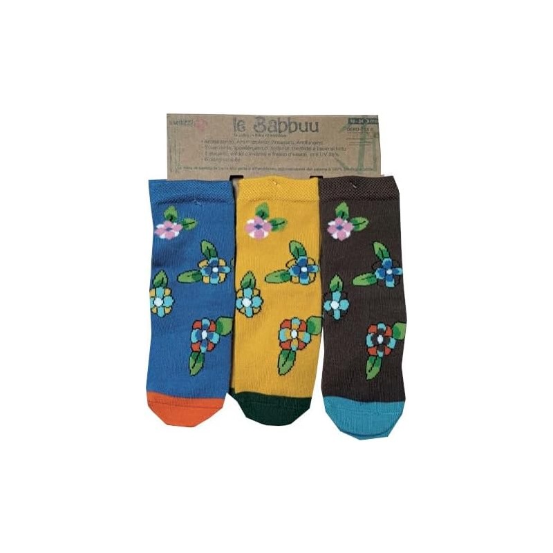 CALZE ANTISCIVOLO IN FIBRA DI BAMBU' TG 2 3 ANNI LE BABBUU FIORI