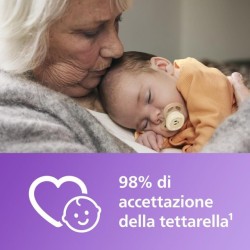 98 di accettazione della tettarella in media il 98 dei genitori ha dichiarato che il proprio bambino accetta i ciucci Philips Avent Ultra con tettarella vellutata in silicone