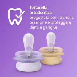 Ciucci per neonati di età compresa tra 0 e 2 mesi con tettarelle ortodontiche e simmetriche in morbido silicone progettate per uno sviluppo naturale del cavo orale