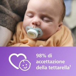 98 di accettazione della tettarella in media il 98 dei genitori ha dichiarato che il proprio bambino accetta i ciucci Philips Avent Ultra con tettarella vellutata in silicone