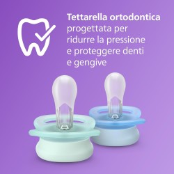 Ciucci per neonati di età compresa tra 0 e 2 mesi con tettarelle ortodontiche e simmetriche in morbido silicone progettate per uno sviluppo naturale del cavo orale