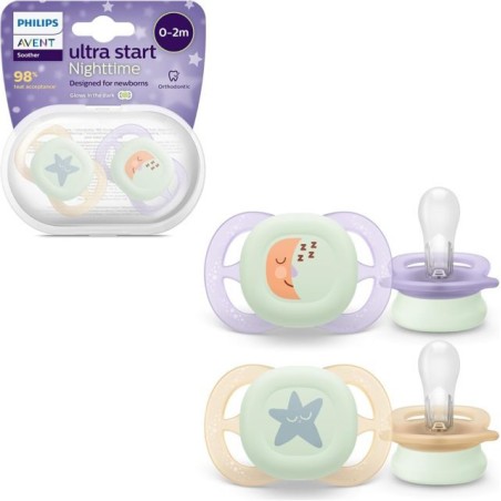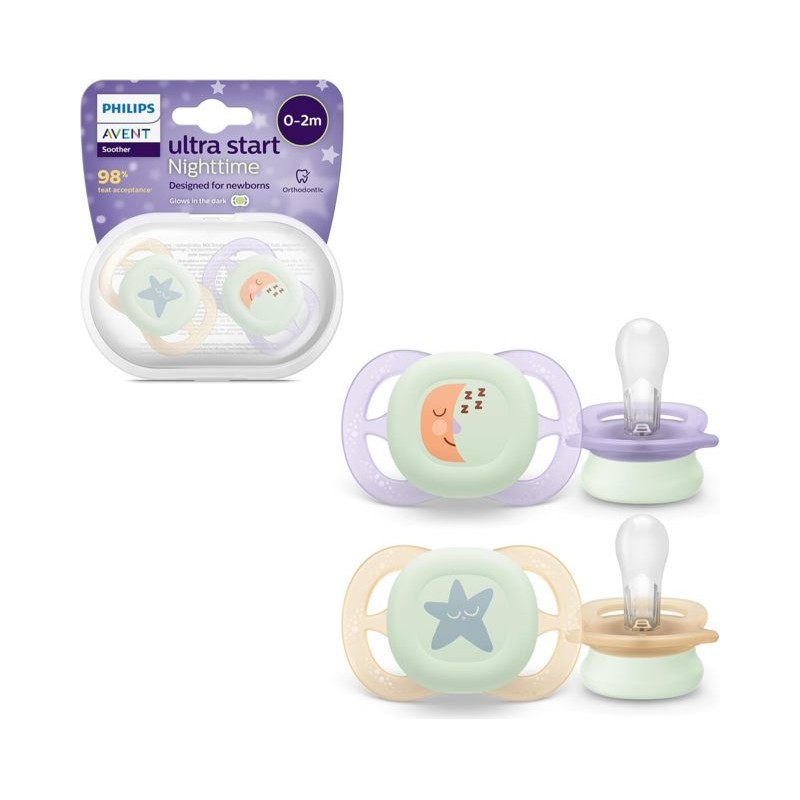 Il ciuccio più piccolo e leggero dell intera gamma Philips Avent Ultra Start Nighttime è ideale come primo cuiccio per neonati in grado di soddisfare il naturale bisogno di suzione fin dal primo gio