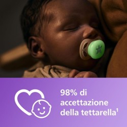 98 di accettazione della tettarella in media il 98 dei genitori ha dichiarato che il proprio bambino accetta i ciucci Philips Avent Ultra con tettarella vellutata in silicone