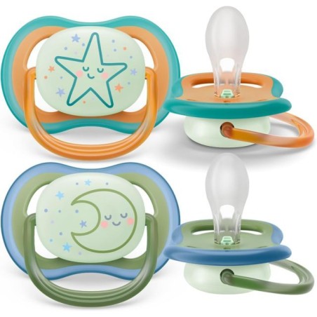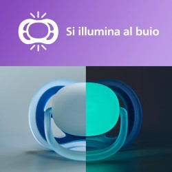 Si illumina al buio Con il pulsante Philips Avent Ultra air si illumina al buio puoi trovare il ciuccio del tuo bambino anche senza accendere la luce