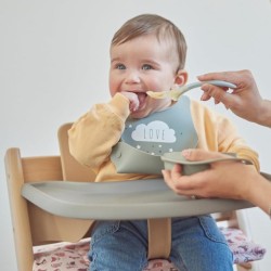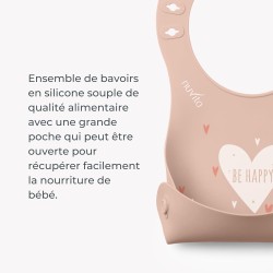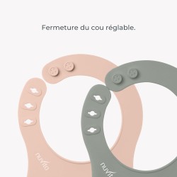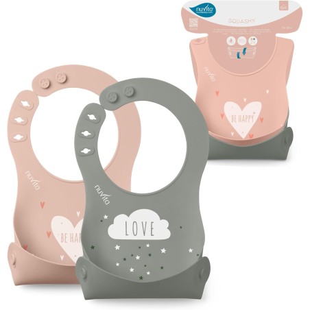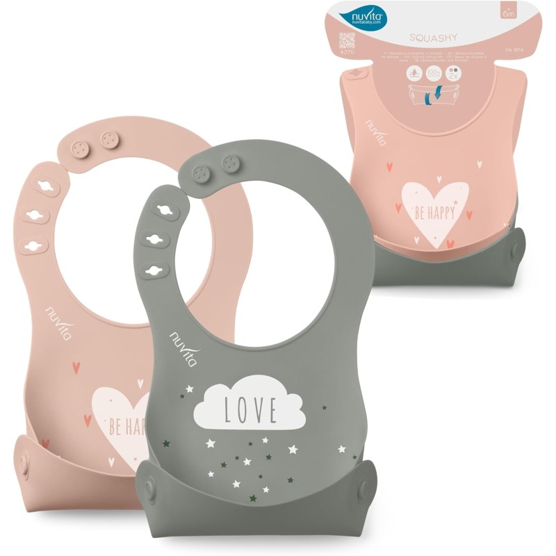 Set di 2 bavaglini Il Nuvita 4370 include un pratico set di 2 bavaglini arrotolabili in silicone con tasca per raccogliere residui di cibo senza sporcare perfetti per i pasti del tuo bambino