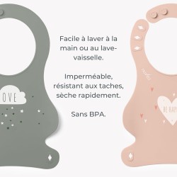 Facili da pulire I bavaglini in silicone possono essere facilmente puliti con acqua e sapone o inseriti in lavastoviglie per una pulizia ancora più comoda e veloce