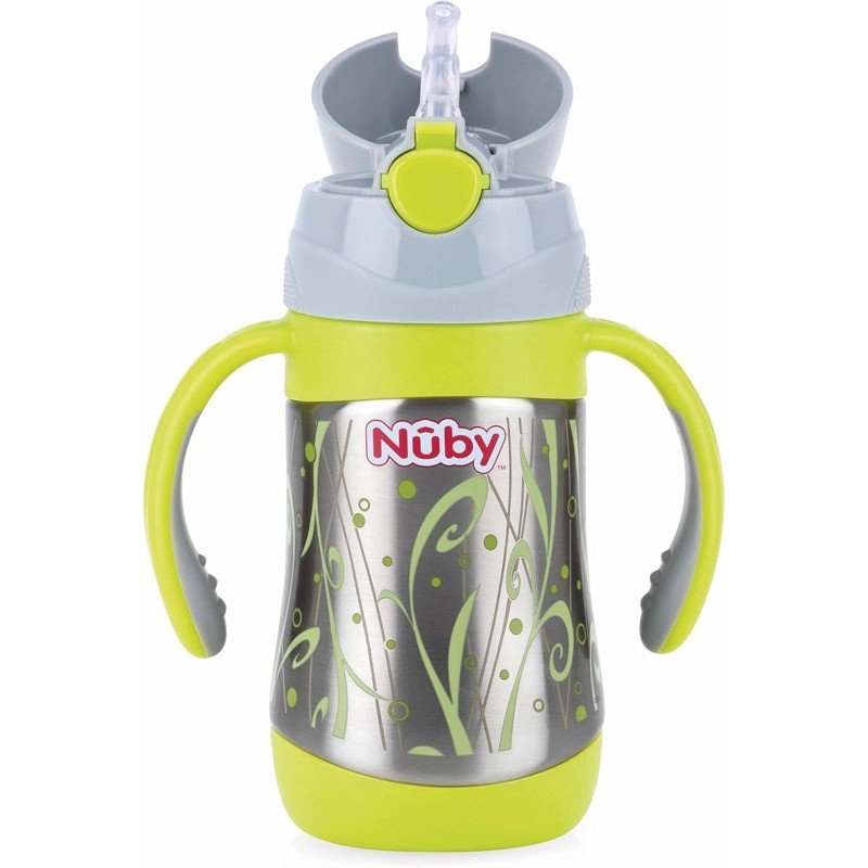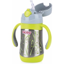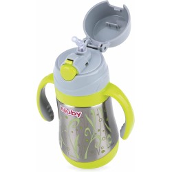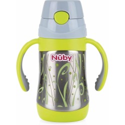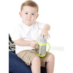 E dotata di una pratica cannuccia in silicone morbido e di due manici per una presa facilitata da parte del bambino