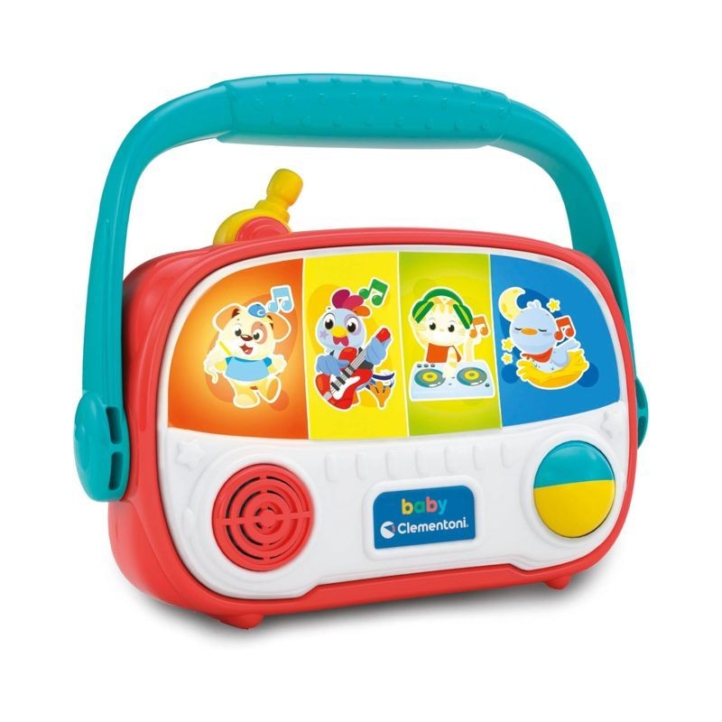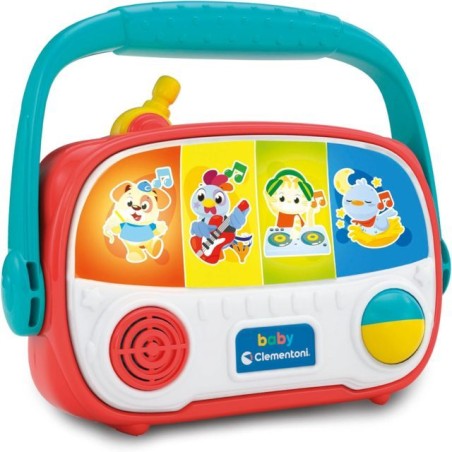 BABY RADIO una radiolina portatile a misura dei più piccoli con 4 personaggi dai ritmi musicali diversi tanti effetti luminosi e una pallina rotante per stimolare la motricità