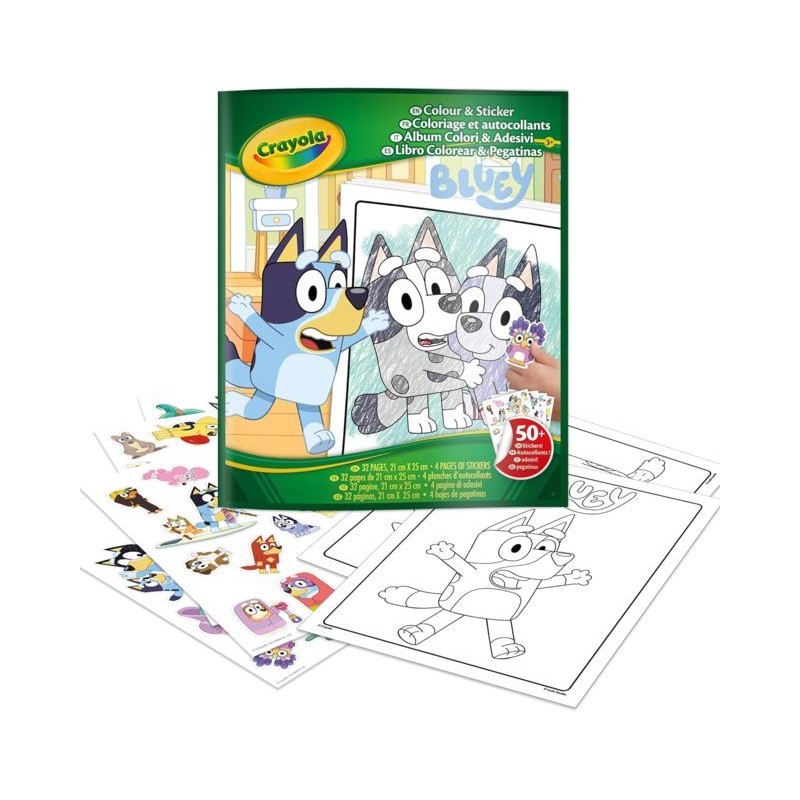 ALBUM DA COLORARE BLUEY Contiene 32 pagine da colorare e attività e 4 fogli di adesivi vivi fantastiche avventure con Bluey e Bingo mentre ti immergi nelle pagine di questo Album
