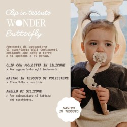 SPILLA WONDERLAND Porta ciuccio in tessuto Suavinex compatibile con i succhietti Wonder tondo e Wonderland a farfalla