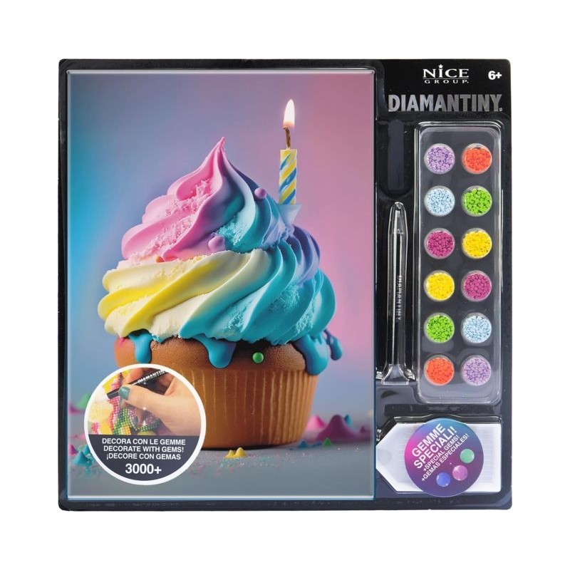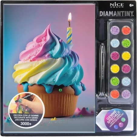 DIAMANTINY LEVEL UP è l attività crystal art per creare mosaici fai da te in rilievo con coloratissime gemme 3D Disponibile nella versione FOOD Cupcake da gemmare