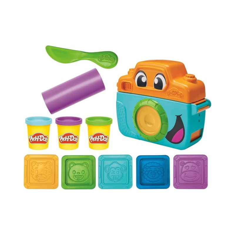 SCHIACCIA E TIMBRA BUFFE FACCE premi la fotocamera per creare una finta pellicola e poi realizza divertenti facce di animali con i 5 stampini leone sorridente ippopotamo dagli occhi a cuore orso felice scimmia impertinente e tigre che piange