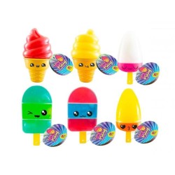 Sei deliziose profumazioni e tre diverse tipologie di putty slime combinati tra loro danno vita a questi coloratissimi abbinamenti al profumo di fragola crema cola ciliegia limone anice e anguria