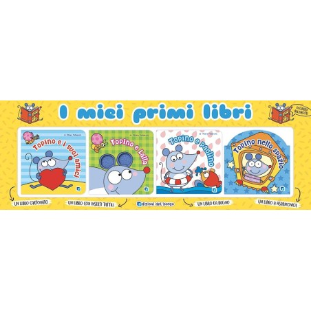 Un originale confezione che contiene quattro libri rivolti alla prima infanzia che raccontano le storie di un buffo topolino Ogni libro ha una caratteristica particolare uno è un cartonato che si co