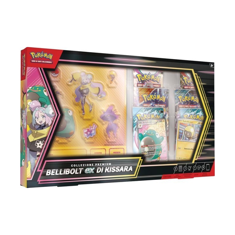 Prodotto in Italiano La collezione premium Bellibolt ex di Kissara del GCC Pokémon contiene 1 carta promozionale olografica a figura intera di Belliboltex di Kissara 1 carta olografica di Tadbulb di Kissara 1 foglio di sagome in plexiglas con base di Kissara Bellibolt e altri 1 fondale fronte retro 1 fotoadesivo di Kissara e Bellibolt 6 buste di espansione del GCC Pokémon 1 carta codice per il GCC Pokémon Live