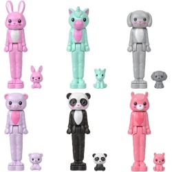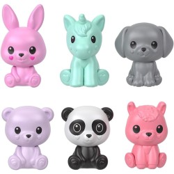 Rivela una sorpresa dopo l altro La collezione comprende un coniglio un unicorno un panda un cucciolo un orso e una fiamma Ogni bambola è incernierata per sedersi o stare in piedi sulla base fornita Ciascuna viene venduta separatamente