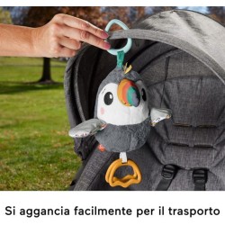 Puoi fissarlo facilmente al tettuccio del passeggino o alla borsa porta pannolini grazie al pratico anello