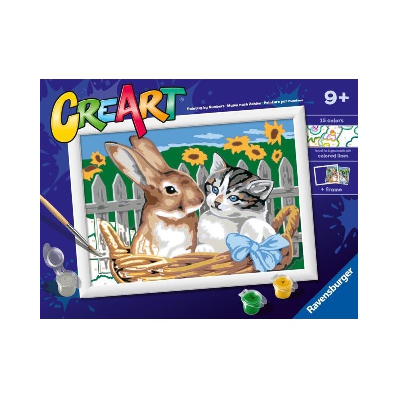 Sbizzarrisciti con CreArt un kit completo per dipingere dei piccoli capolavori semplicemente con l aiuto di numeri e bordi colorati educativo per i piccoli artisti e rilassante per i più grandi CreArt è lo svago ottimo Con CreArt puoi scegliere tra tantissimi soggetti e diversi livelli di difficoltà a seconda dei gusti e dell età a partire dai 7 anni I numeri ti guideranno all utilizzo dei colori da usare per dipingere ogni spazio e per i più piccoli le linee colorate assicureranno un risultato ottimo Dipingere con i numeri non è mai stato così semplice nella confezione trovi la tavola prestampata i colori acrilici a base d acqua in vaschette richiudibili e un porta tempere il pennello e la cornice sono inclusi Rilassati esercitando la manualità fine e le tue abilità di concentrazione il risultato ti sorprenderà