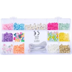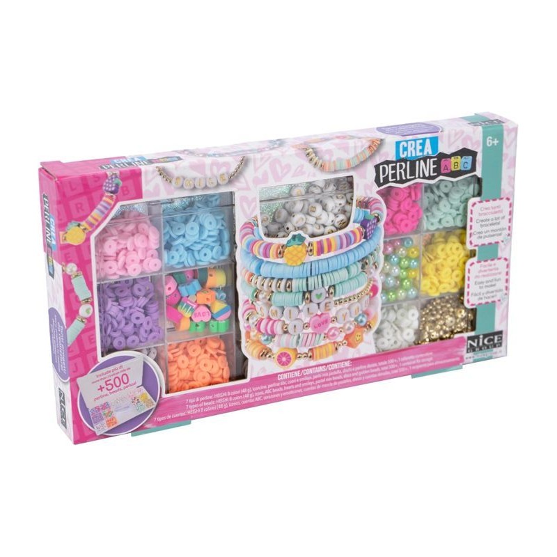 CONTENUTO la confezione è arricchita da Perline ABC di colore pastello a forma di smile cuore disco a sfera con frutta e filo elastico di 3 colori per creare bracciali collane e decorazioni per smartphone