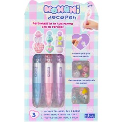 MOMOMI Decopen scopri il kit di penne da decorare con le perline in stile momomi La confezione contiene 3 penne di colore Azzurro Rosso e Viola e 9 perline