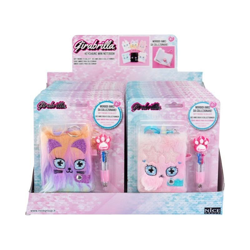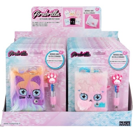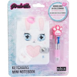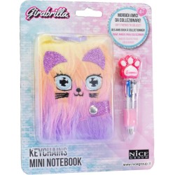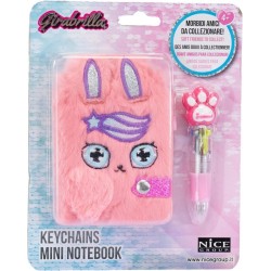 GIRABRILLA KEYCHAINS 6 mini notebook con temi e colori diversi da collezionare con peluche colorato con orecchie che richiamano animali coniglio gatto in morbido tessuto