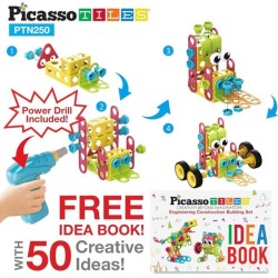 Libero IDEA BOOK POWER DRILL Questo kit di ingegneria PicassoTiles è dotato di un libro idea per consentire ai bambini di costruire oltre 50 progetti di costruzione tra cui 16 passaggi esplosi da