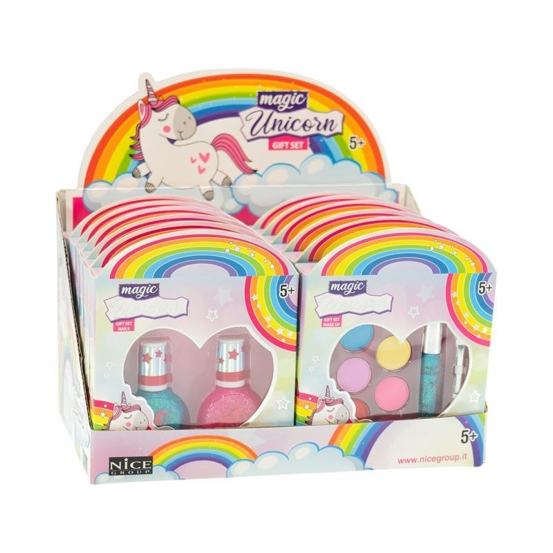 CONTENUTO 1 kit casuale Magic Unicorn che contiene 1 lucidalabbra e 6 ombretti oppure 2 smalti