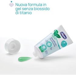 DENTIFRICIO ALLA MENTA DOLCE Il dentifricio per bambini Chicco al gusto di menta dolce delicato è pensato per un utilizzo a partire dai 6 anni rispetta il tessuto gengivale sensibile dei bambini e