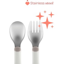 POSATINE INOX 18M Le posate Chicco a misura di bambino per cominciare a mangiare come i grandi con forchetta e cucchiaio ACCIAIO INOSSIDABILE Le posatine Chicco sono realizzate in acciaio inossid